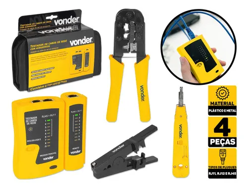 Garanta a integridade das suas instalações de rede e telefonia com o Testador de Cabos Vonder. Este equipamento é essencial para profissionais de TI, eletricistas e instaladores que buscam um diagnóstico rápido e preciso de cabos UTP e telefônicos. Com a qualidade reconhecida da marca Vonder, este testador identifica instantaneamente falhas de conexão, curtos-circuitos e fios abertos ou invertidos.